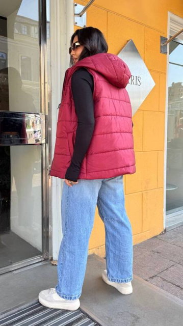Жилет з капюшоном, на блискавці та двома кишенями, незамінний на цю пору року. Утеплений синтепоном 150.