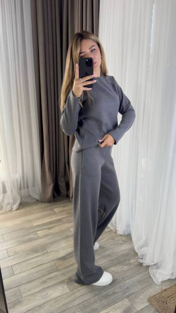 Костюм штани талія на резинці, з двома кишенями. Кофта рукав реглан. Тканина приємна до тіла, м'яка, тепла, не колеться