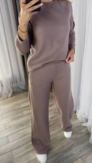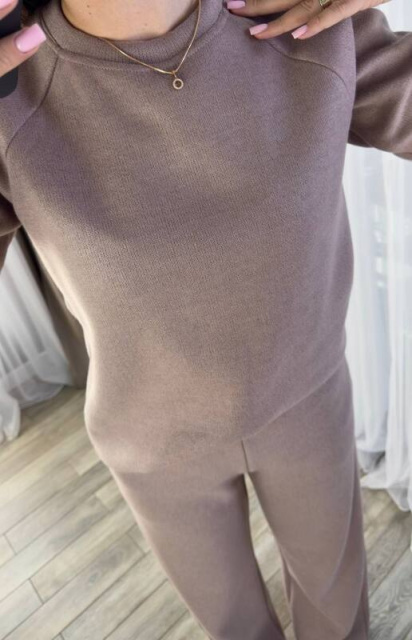 Костюм штани талія на резинці, з двома кишенями. Кофта рукав реглан. Тканина приємна до тіла, м'яка, тепла, не колеться