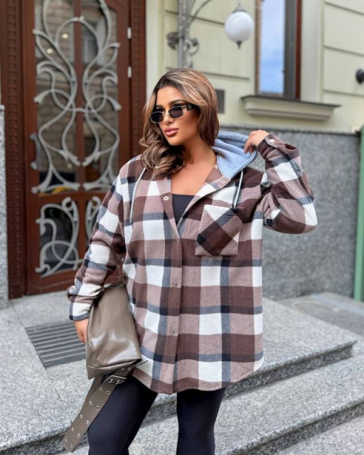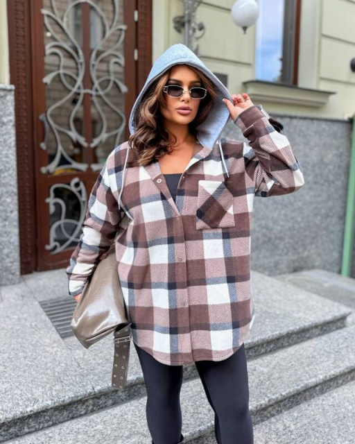 Сорочка з капюшоном , з турецького флісу , клітинка