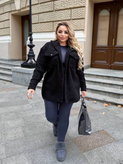 Стильна тепла сорочка з капюшоном на ґудзиках з баранчику на флісі (верхній одяг)