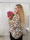 Модель на фото одягнена в 48-50, має параметри 110-88-111, на ній вільного фасону