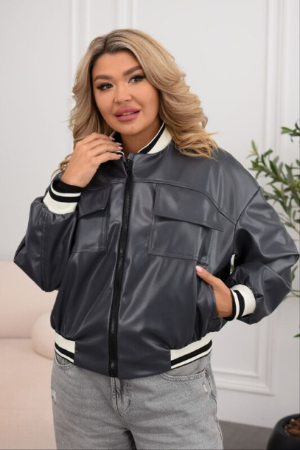 Осіння куртка. Куртка шкіряна, на підкладі, застібка змійка, функціональні кишені. Горловиною, низ куртки і манжети виконані рибаною. Еко шкіра тканини.