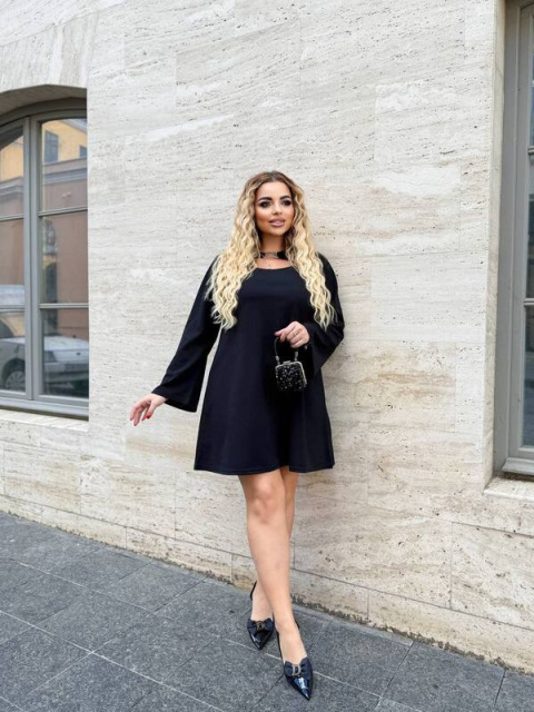 Опис: сукня трапеція яка приховує животик, трендові широкі рукава, та має гарне спокусливе декольте оздоблене брошкою в каменях