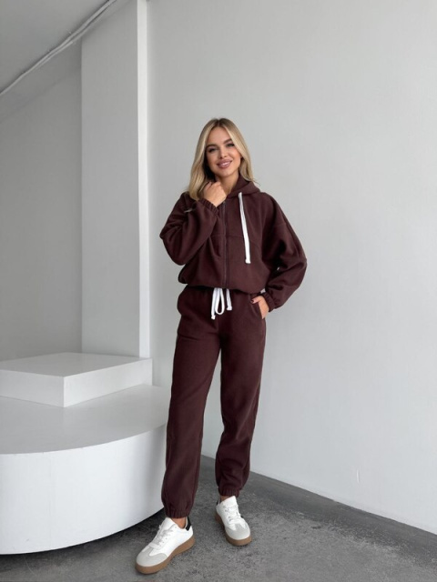 Теплий костюм в деталях, зі штанами джогерами і кофтою на зіпці та понизу на кулісках, подвійним капюшоном. Костюм високої якості і пошитя, стане незамінним в твоєму гардеробі. Компліменти гарантуємо