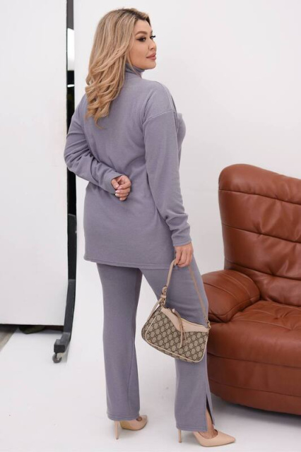 Тканина: Двух стороння Ангора рубчік, гарної якості, на флісі дуже теплий та зручний, кофта приспущений рукав, оверсайс щоб приховати животик , штани тренд сезону Палаццо висока посадка штанів, збоку розріз тренд цього сезону