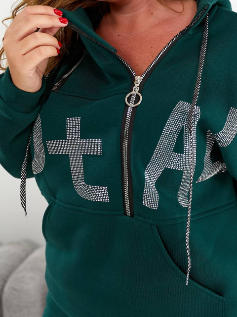 Кофта вільного крою, зручний глибокий капюшон, декорована камінням.