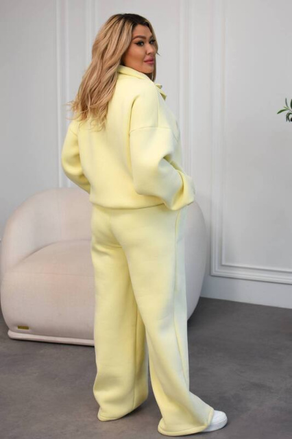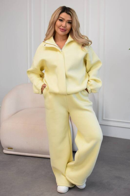 Кофта на блискавці, ховає спеціальна планка. Низ кофти на резинці. Штанці палаццо, низ регулюється регуляторами.
