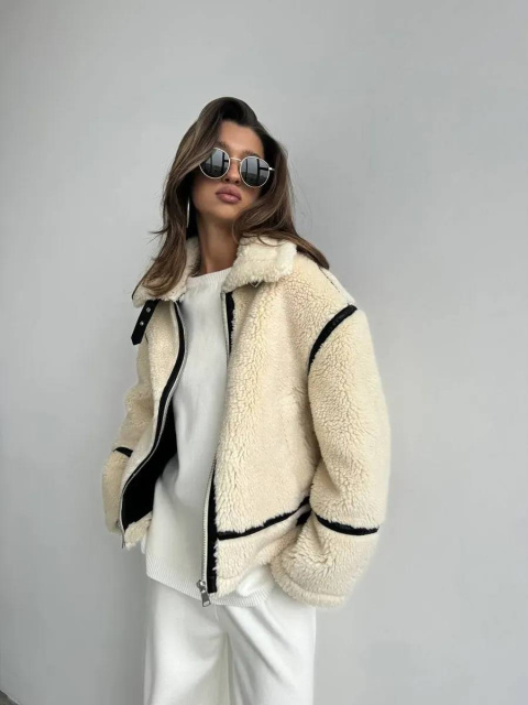 Модель виконана з якісного штучного хутра з контрастними вставками, виглядає дорого та трендово.