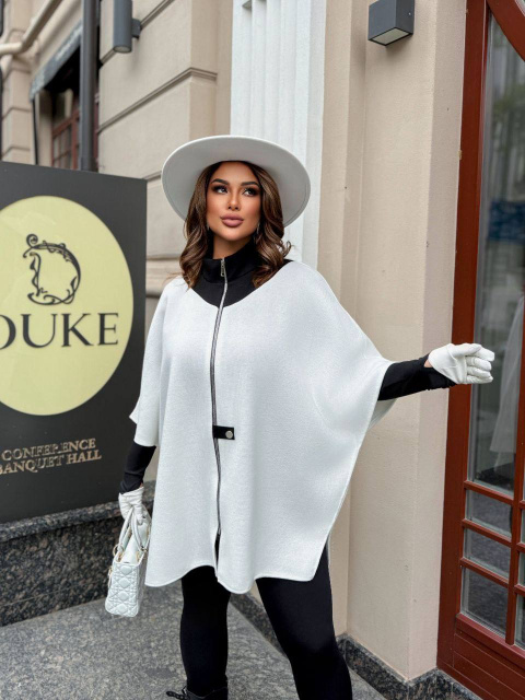 Подовжений, універсальний кардиган-пончо виготовлений з щільної ангори в'язки, тепла та м'ягенька тканина,приємна до тіла, не колеться. Вільний крій приховує недоліки та підійде для будь-якої фігури. Рукав 3/4, зручна робоча блискавка.