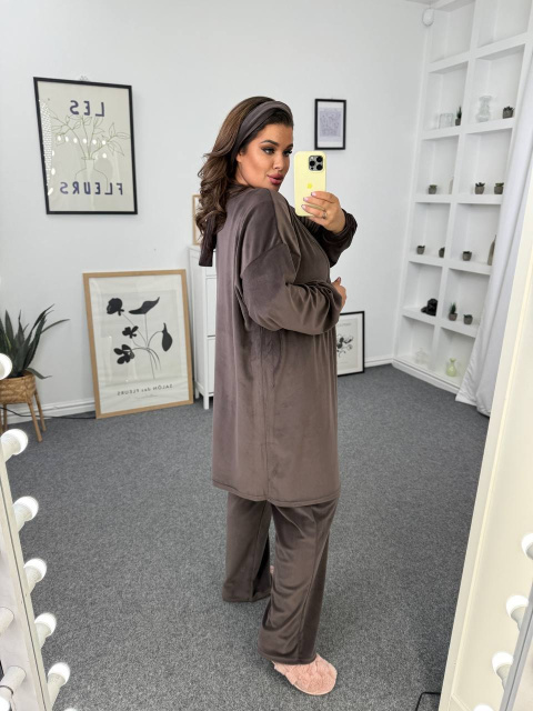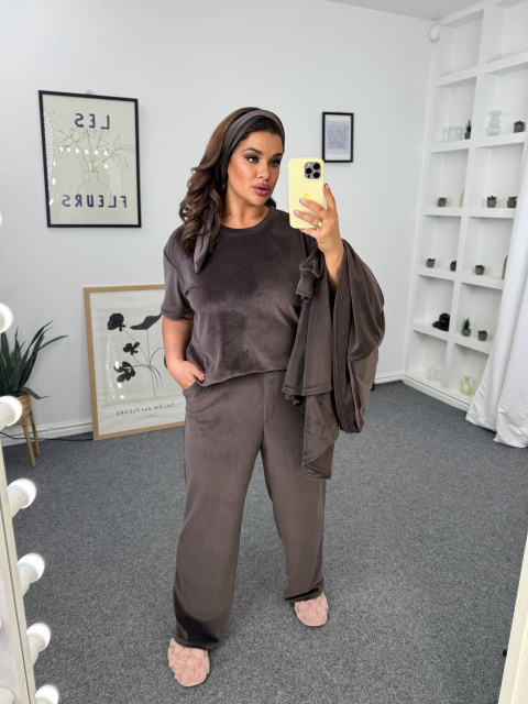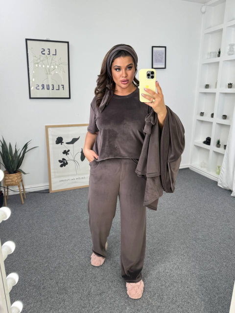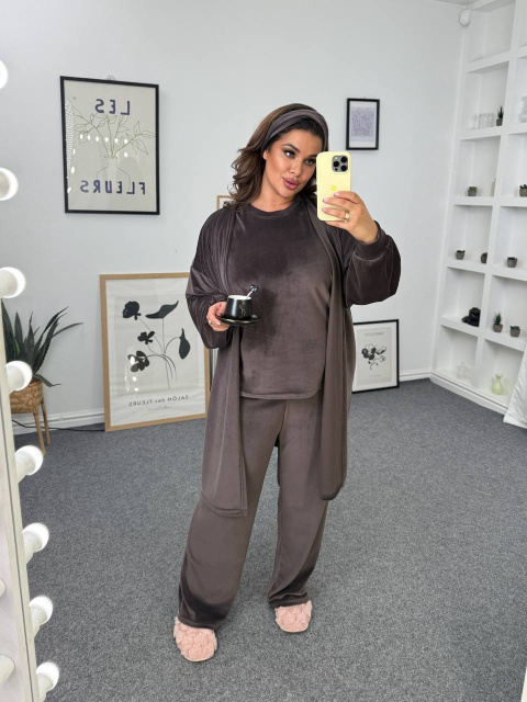 Ідеальний мʼякий костюм. Футболка короткий рукав. Штани із кишенями,талія на резинці. Халат із поясом непришивним.
