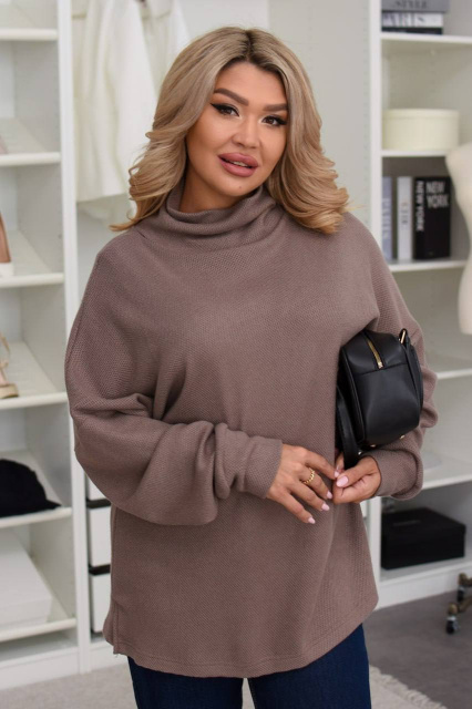 Увага: светр має вільний фасон, враховуйте це під час вибору розміру. Трикотаж тягнеться; допускається різниця в замірах ±1–2 см. Горло можна носити відворотом або підгорнутим