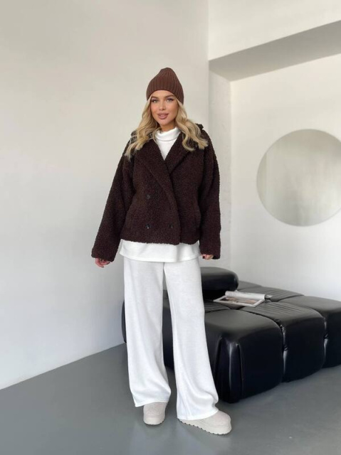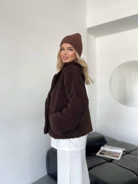 Виконана з щільного теплого хутра Тедді на підкладці — дарує комфорт і тепло навіть у прохолодну погоду. Вільний силует та спущена лінія плеча створюють стильний oversize-ефект, який легко поєднується з джинсами, сукнями чи трикотажними костюмами.