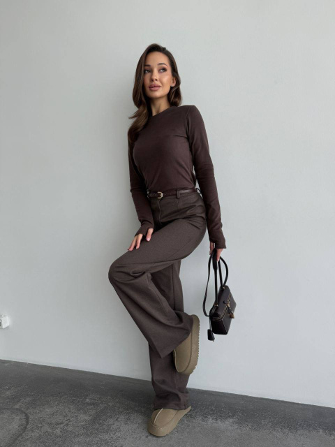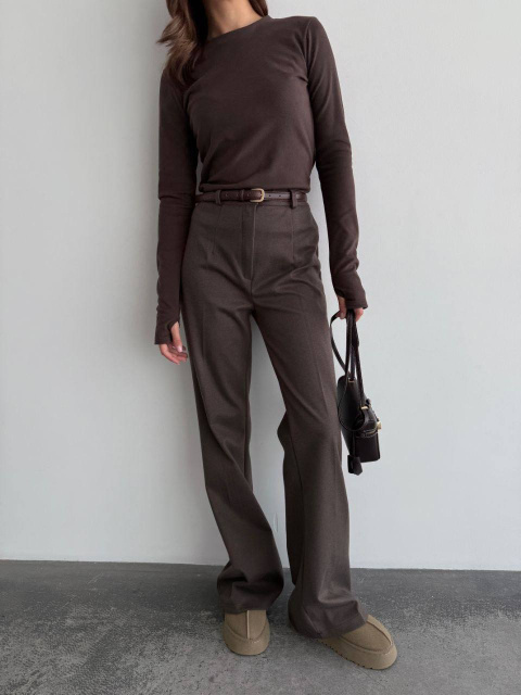 Теплі класичні брюки кльош, виконані з якісною шерстяної тканини стрейч.