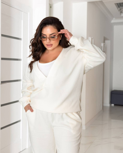 60-62 Кофта Ог 154 см, рукав 58 см, плече 23 см, спинка 73 см. Майка по спинці 105 см, Ог 136 см. Штани от 90-150 см, об 152 см, довжина 110 см.