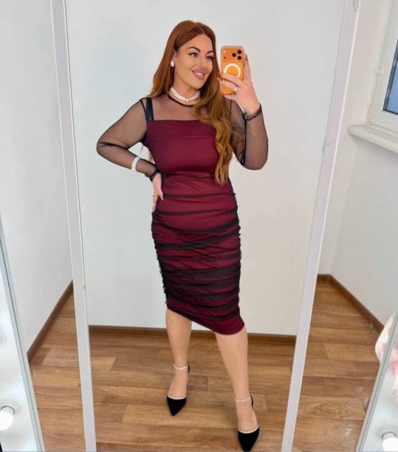 Тканина: Масло трикотаж(щільний та добре тягнеться) +сітка (мʼяка та тягнеться)