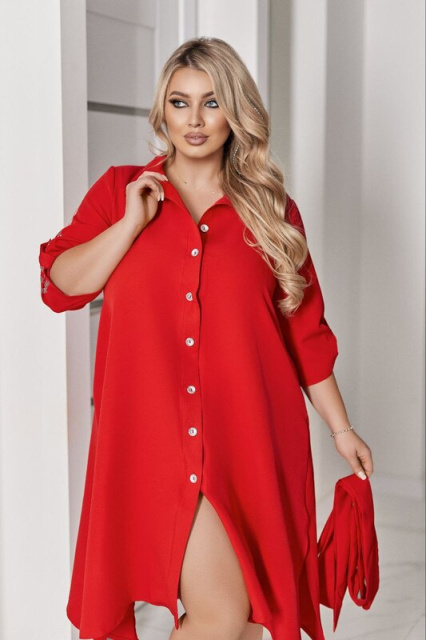 Сукня-сорочка з поясом, комірцем і гудзиками по всій довжині.