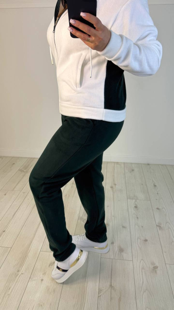 Костюм спортивний штани та кофта. Кофта із капюшоном,на блискавці, рукава на манжетах, з двома карманами. Штани прямого крою до низу, посадка висока, талія на резинці, із кишенями. Дуже теплий, тканина мʼягенька та щільна
