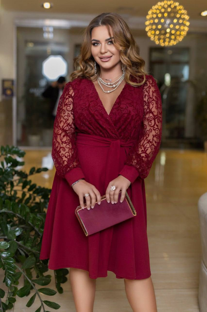 Елегантне жіноче плаття, виконане з кріп дайвінгу (тягнеться) і сітки з блиском. Перед сукні з імітацією запаху. До сукні додається знімний пояс із основної тканини. У такій сукні будь-яка жінка зможе відчути себе справжньої леді та королевою вечора, ця сукня здатна надати жінці ніжності, легкості та елегантності.