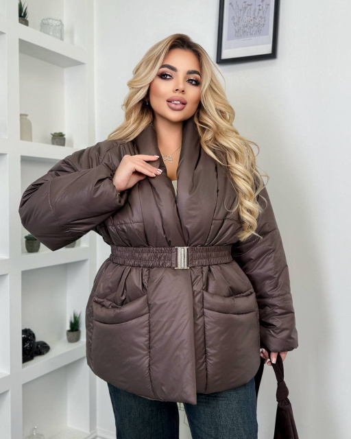 Тепла куртка цікавого крою. Без застібок, ремінь в комплекті