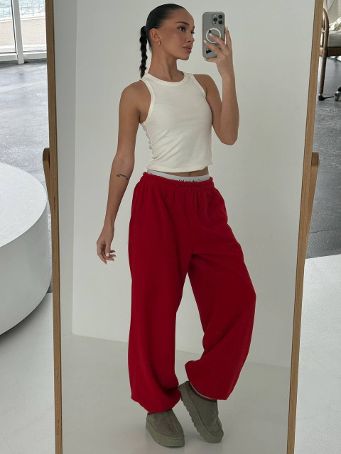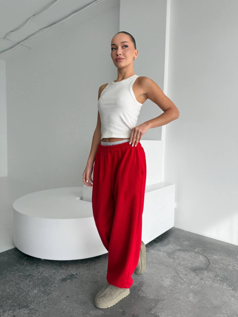 Стильні та комфортні штани вільного крою. Виготовлені з м’якої тканини, мають еластичний пояс на резинці, що забезпечує зручну посадку. Штани прямі, довжиною до підлоги, створюють легкий та розслаблений силует.