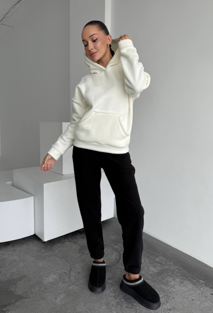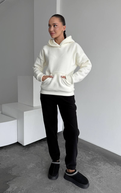 Теплий та затишний комплект, що складається з м’якої худі та комфортних штанів. Худі має вільний крій, просторий капюшон і зручну кишеню кенгуру.