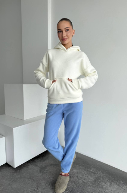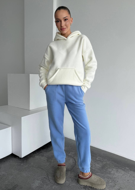 Теплий та затишний комплект, що складається з м’якої худі та комфортних штанів. Худі має вільний крій, просторий капюшон і зручну кишеню кенгуру.