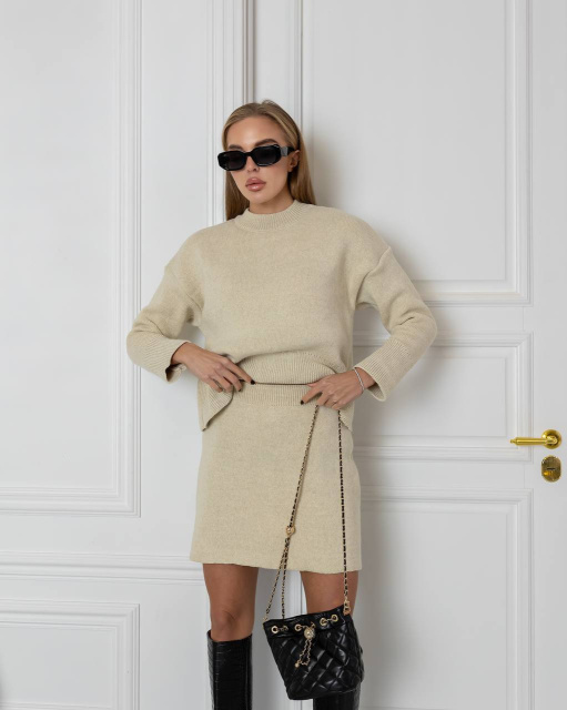 Комплект зі светром та спідницею вибір для стильного образу на кожний день. Відмінно поєднується з будь-якими аксесуарами та взуттям.