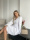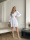 Модель має акуратний V-подібний виріз, довгі об’ємні рукави з м’якими манжетами та виразну двошарову спідницю, яка створює легкий, повітряний силует.