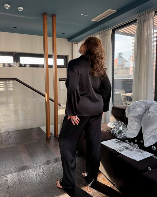 Комплект домашнього одягу. Сорочка + штани. Сорочка з планкою на гудзиках, штани на резинці. Склад: Поліестер - 95%, Бавовна - 5%.