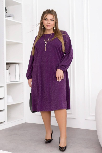Елегантна та мінімалістична сукня, що зачаровує своїм делікатним блиском люрексу. Модель має напівкруглий широкий виріз горловини, діагональні виточки на грудях, які красиво підкреслюють силует, та зручні кишені у бокових швах. Вільні рукави, зібрані на зап’ястках резинкою без манжетів, додають легкості та жіночності. Без застібок — лише комфорт, блиск і невимушена елегантність у кожному русі.