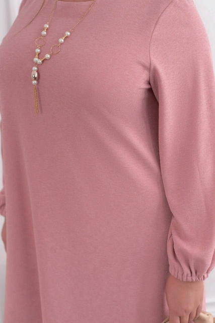 Елегантна та мінімалістична сукня, що зачаровує своїм делікатним блиском люрексу. Модель має напівкруглий широкий виріз горловини, діагональні виточки на грудях, які красиво підкреслюють силует, та зручні кишені у бокових швах. Вільні рукави, зібрані на зап’ястках резинкою без манжетів, додають легкості та жіночності. Без застібок — лише комфорт, блиск і невимушена елегантність у кожному русі.