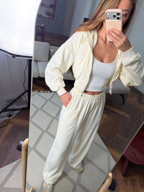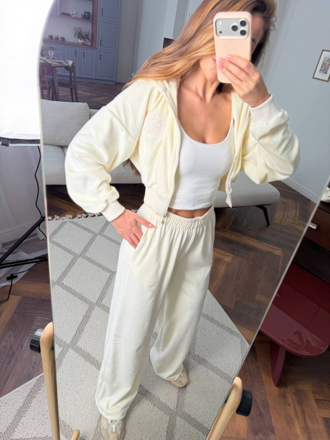 Кофта на блискавці з акуратною вишивкою додає образу преміальності, а вільні штани забезпечують максимальну зручність.