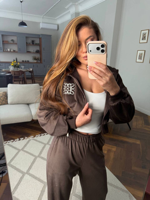 Кофта на блискавці з акуратною вишивкою додає образу преміальності, а вільні штани забезпечують максимальну зручність.