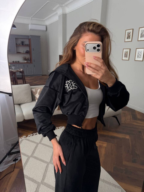 Кофта на блискавці з акуратною вишивкою додає образу преміальності, а вільні штани забезпечують максимальну зручність.